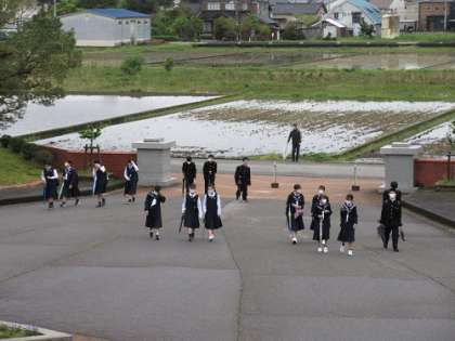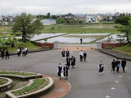 どんよりとした曇り空の下、今日も本校生徒は元気に登校してきました。