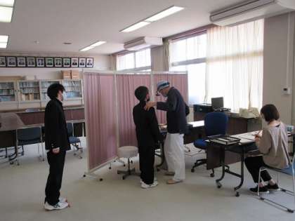 本日午後から耳鼻科検診を行いました。 廊下で静かに待機し、整然と検査を受けることができました。