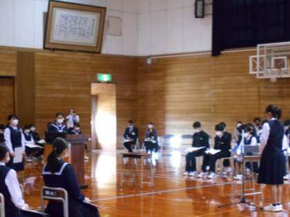 4月28日(木)生徒総会その4 公開日 2022/04/28 更新日 2022/04/28 2学年 2年生は3年生の様子をしっかり見ながら、全員集中してみんなの意見を聞いたり、代表として意見を発表したりしていました。