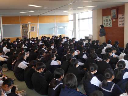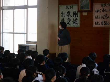 2学年の学年集会で着任の挨拶を行い、生徒たちと顔合わせをしました。