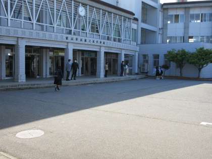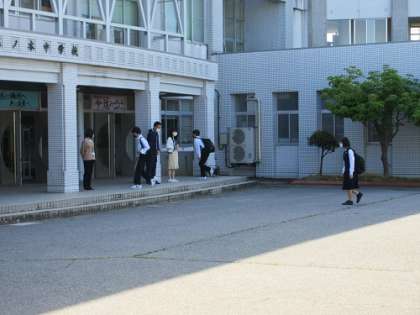 生徒玄関前では、いつもどおり教職員が笑顔で生徒を出迎えています。