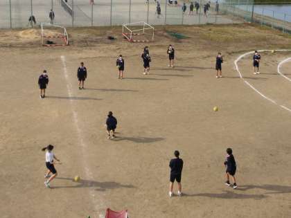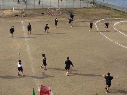 今日のハンドボール部の活動風景です。 遠投でのキャッチボールを行っていました。