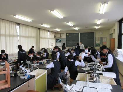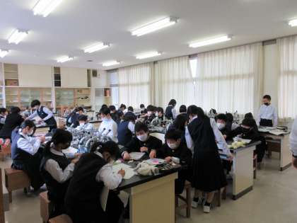 1年4組の5限目の理科の授業の様子です。 「ツバキの花の観察」を行いました。