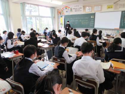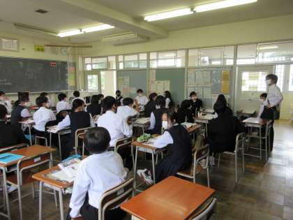 5月19日(木) 1年 授業風景 公開日 2022/05/19 更新日 2022/05/19 1学年 本日の1年生の授業の様子です。 初めての中間考査に向けて、しっかりと集中して取り組んでいます。 1−1 英語 「知らない人やものについてたずねよう」 1−2 理科 「趣旨を作らない植物のつくりを知ろう」 1−3 社会 「東アジアにはどんな文明があったの?」