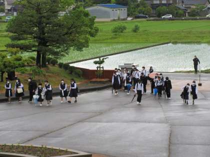 今朝は7:30過ぎまでは雨が降っていたのですが、7:50頃からは雨も上がり、傘をささずに登校することができました。