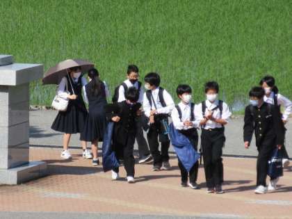 一人一人の手指に霧吹きで消毒液を吹きかけて、手指消毒を徹底するように呼びかけました。