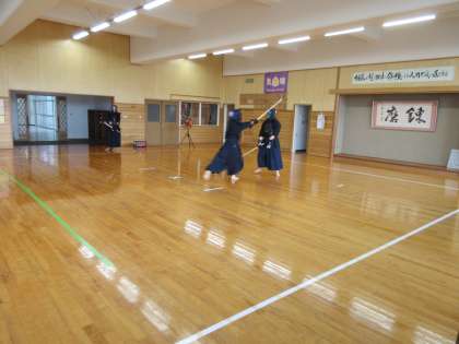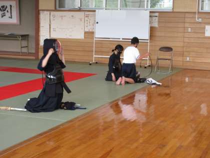 本日の剣道部の活動の様子です。 先輩が後輩に面の付け方を丁寧に教えていました。