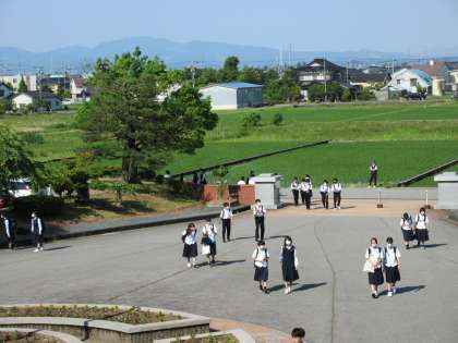 6月2日(木) 登校風景 公開日 2022/06/02 更新日 2022/06/02 news 本日の登校風景です。 青空が広がり快晴の中、本稿生徒は登校してきました。 今日は気温が高くなるようなので、熱中症に注意して、場面によってはマスクを外すよう指導していきたいと考えています。 今日も1日頑張ります!