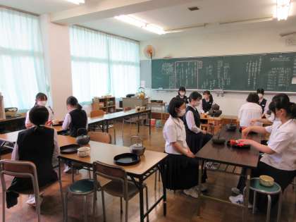 本日茶道部は、講師の先生をお招きしてお茶を点てる手順等を指導していただきました。