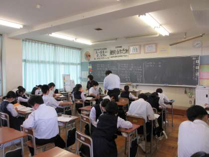 6月10日(金) 2年 授業風景 公開日 2022/06/10 更新日 2022/06/10 2学年 今日の2年生の授業の様子です。 画像上段 2−1 保健体育 「がんについて知ろう」 画像中段 2−2 数学「連立方程式」 画像下段 2−3 英語「カリフォルニアロールがどのようにしてできたか」