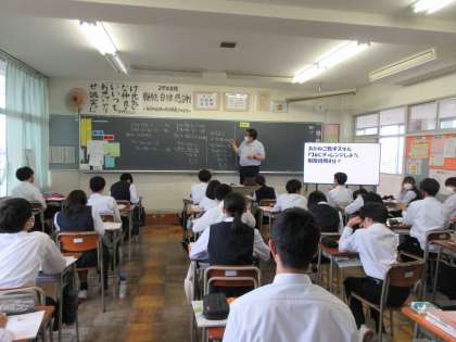 6月14日(火) 2年 授業風景 公開日 2022/06/14 更新日 2022/06/14 2学年 2年生の6限目の授業の様子です。 画像上段 2−1 保健体育 「がんについて」 画像中段 2−2 理科 教育実習生による授業 画像下段 2−3 数学 「連立方程式」