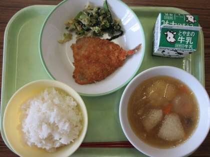 6月22日(水) 今日の給食 公開日 2022/06/22 更新日 2022/06/22 news 今日の給食のメニューは以下のとおりです。 ○ごはん ○牛乳 ○あじフライ ○ごまびたし ○冬瓜の吉野煮 「あじフライ」が、ふわふわで柔らかく、とても美味しかったです。