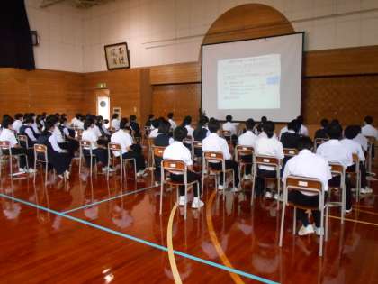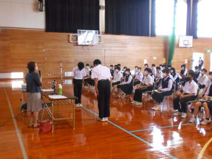 今日の5・6限、体育館とコモンスペースでマナーアップ講座を行いました。