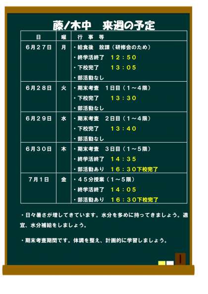 6月27日(月)からの予定