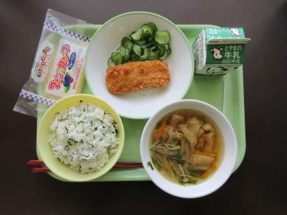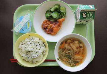 今日の給食のメニューは以下のとおりで、選択献立です。