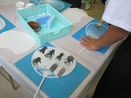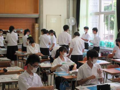 7月8日(金)2年 授業風景 公開日 2022/07/08 更新日 2022/07/08 news 2年生の美術ではうちわ作りをしています。 写真上段・中段 2−2 美術「水墨画でうちわ作り」 写真下段 2年生美術作品