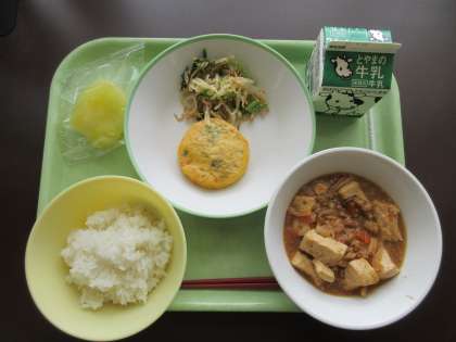 7月8日(金)今日の給食 公開日 2022/07/08 更新日 2022/07/08 news 今日の給食のメニューは以下のとおりです。 ○ごはん ○牛乳 ○かに玉 ○ナムル ○麻婆豆腐 ○冷凍リンゴ かに玉がふわふわで美味しかったです。