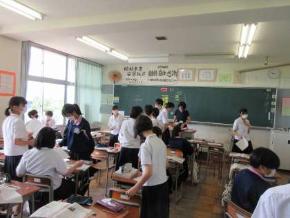 7月12日(火) 2年 授業風景 公開日 2022/07/12 更新日 2022/07/12 2学年 写真上段 2−3 理科 「生物のからだのつくりはどうなっているか?」 中段 2−4 英語 「It is 〜 + to 《動詞の原形》」 下段 2−5 社会 「九州地方の農業」