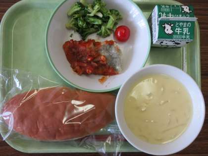 7月12日(火) 今日の給食 公開日 2022/07/12 更新日 2022/07/12 news 今日の給食のメニューは以下のとおりです。 ○コッペパン ○牛乳 ○魚のチリソースかけ ○ゆでブロッコリー ○コーンポタージュ ○ミニトマト 今日の「魚のチリソースかけ」は、少しだけ辛いソースがたっぷりとかかっていて、とても美味しかったです。