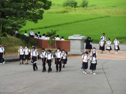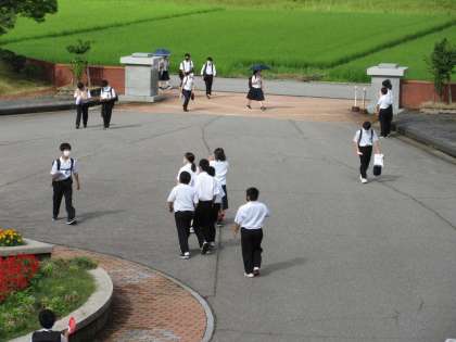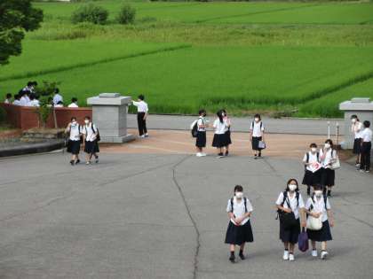 今朝の登校風景です。 今日は、暑い一日になりそうです。 その暑さに負けず、藤中生は頑張ります!
