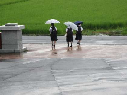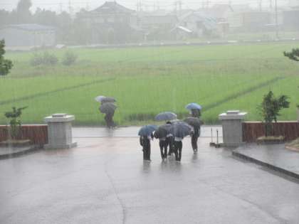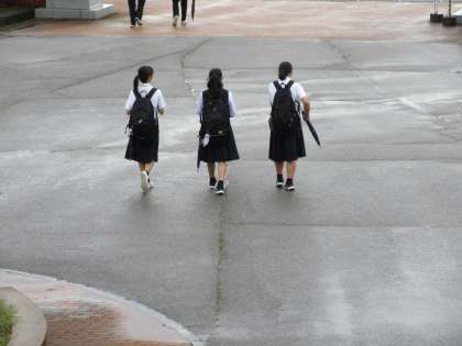 下校開始時間の12:30頃は、とても激しい雨が降っていました。
