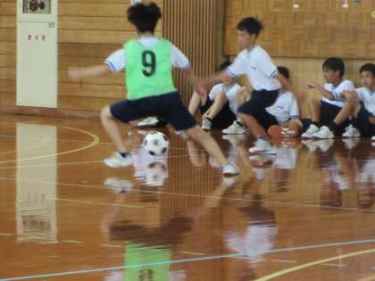 写真上段 2−4 国語 「リベート」 写真中段 2−5 保体 「サッカー」男子 写真下段 女子