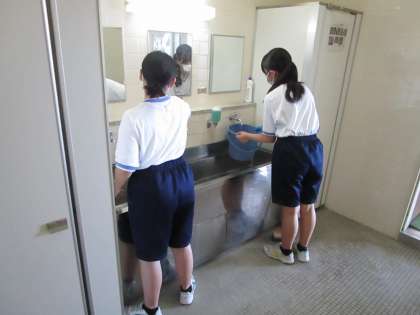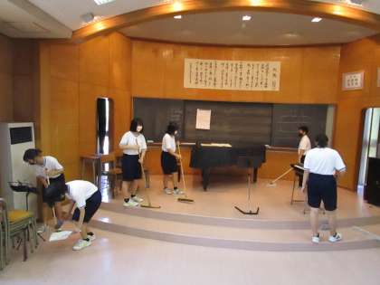 7月28日(木) 今日の部活動 吹奏楽部 1 公開日 2022/07/28 更新日 2022/07/28 news 本日吹奏楽部は、週1回の清掃活動を行いました。 来賓トイレと第1音楽室と第2音楽室に分かれて清掃しました。 普段の清掃では時間が足らずできていなかったところまで、しっかりと清掃することができました。 今後もきれいな環境を保っていきましょう!