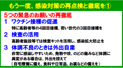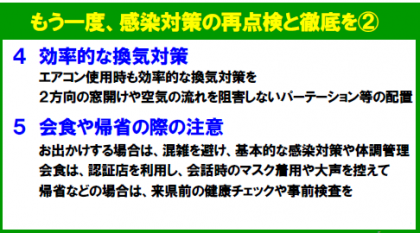 特に、以下の富山県から出されている「感染対策の再点検と徹底」をよろしくお願いします。