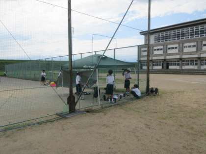 ソフトテニス部は、試合が近づいており、練習にも気合いが入ってます。休憩もしっかりとっています。