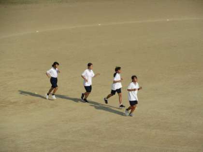 朝の涼しい時間帯に活動しています。 駅伝部