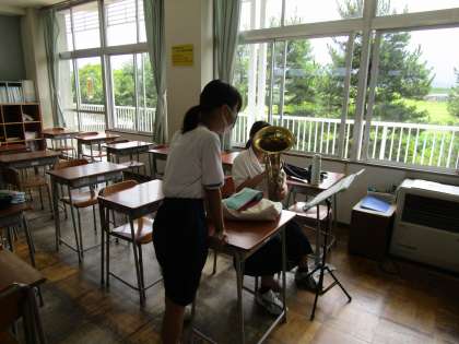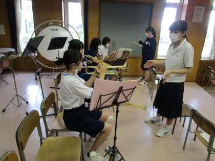 8月18日(木)今日の部活動 吹奏楽部 公開日 2022/08/18 更新日 2022/08/18 news 吹奏楽部は昨日から部活動を再開しております。昨日は一週間ぶりの楽器演奏だったので、勘を取り戻すことに必死でしたが、今日は上達を目指して細かい練習に励みました。 先輩たちが丁寧に後輩に指導している姿も多々あり、本当に頼もしい存在になってきました。 また、週1回の清掃活動もどんどん手慣れてきて、短時間でもきれいにできるようになっています。