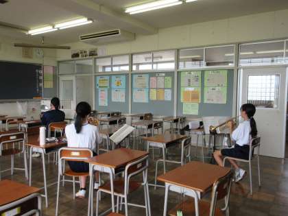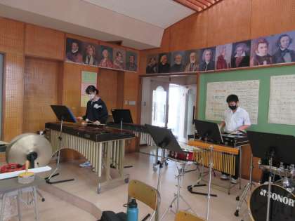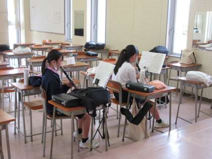 吹奏楽部はパートに分かれて、練習しています。