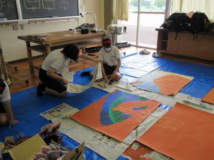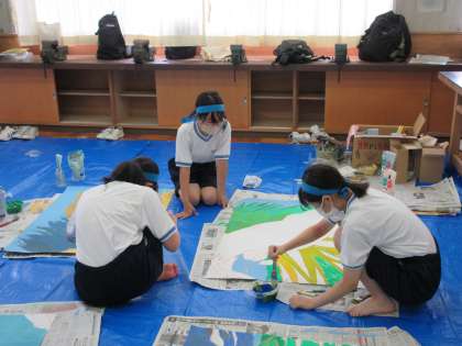 団演技もデコレーションも仲間と協力し、完成に向けて取り組んでいます。
