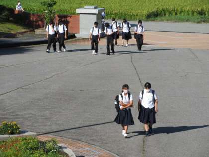 8月29日(月) 登校風景 公開日 2022/08/29 更新日 2022/08/29 news 37日間の夏休みを終え、今日から2学期スタートです。 今朝は、澄み渡った青空の中、気温も高くなく、爽やかな空気に包まれながら本校生徒は、元気に登校してきました。 登校してくる生徒たちからは、「新学期を新たな気持ちで頑張ろう」という思いが感じられました。 今学期も「活力と『ありがとう』にあふれる学校」を目指して、生徒、教職員が共に力を合わせて頑張ります!