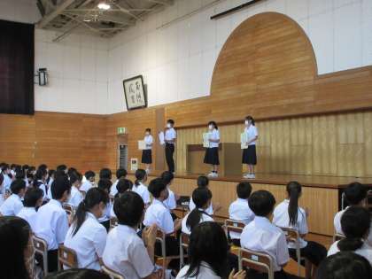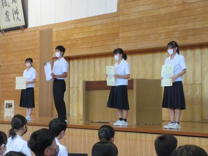 夏休み中にあった様々な大会の受賞報告会を行いました。運動面、文化面ともに実力を発揮しました!