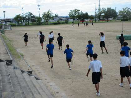 陸上競技部は、念入りにウォーミングアップを行いトレーニングをしていました。