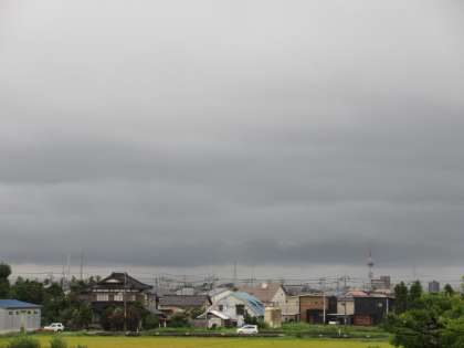 写真上段は、雨が降り始める前のどんよりと黒い雲に覆われた状態です。
