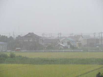 写真下段は、大粒の激しい雨が降り始め、先が白くぼやけた感じになっています。