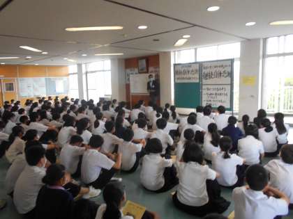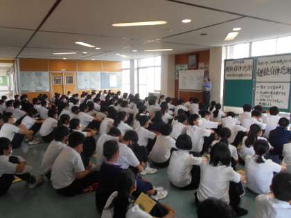 9月2日(金) 2年 「総合的な学習の時間」 『14歳の挑戦』出発式 公開日 2022/09/02 更新日 2022/09/02 2学年 式の中では、鍋田校長から2年生全員に向けて激励の言葉がありました。 その後、学年スタッフから注意事項を再度確認し、最後は、若崎学年主任が『14歳の挑戦』で成功する秘訣を話しました。 成功の秘訣は、「はい」「先手必勝」「笑顔」です。 来週5日間、今まで学習したことを活かして頑張ってほしいです。