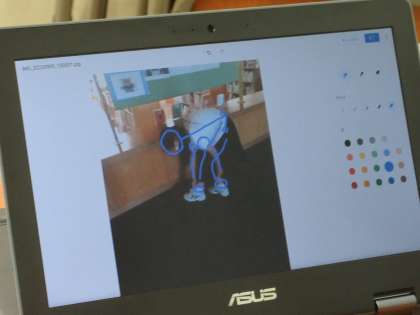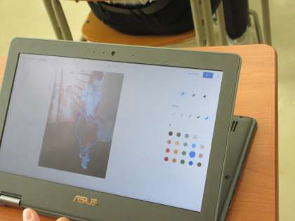 タブレット端末を使って、人の骨格で形を捉えて描く技法を学習していました。