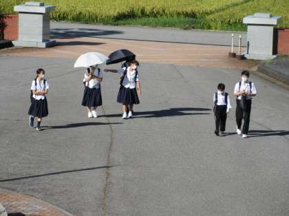 9月6日(火) 登校風景 公開日 2022/09/06 更新日 2022/09/06 news 今朝は台風の影響でフェーン現象となり、朝から気温が上昇し、とても暑い中での登校となりました。 暑い中でも、本校生徒はみんな元気に登校してきました。 3年生は、明日から修学旅行を控え、今日は最終確認を行います。 みんなで元気に出発できるように、よい準備をしましょう!