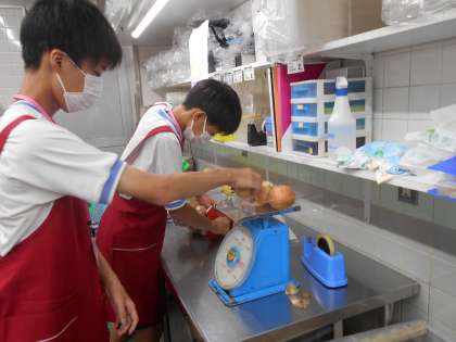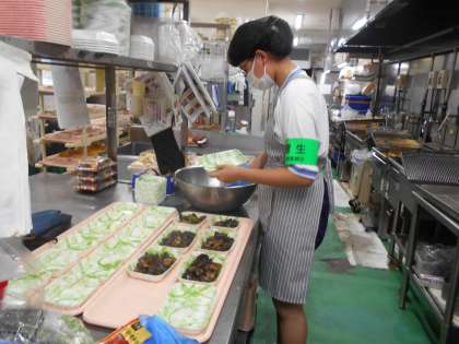 2枚目は、「大阪屋ショップ秋吉店」の活動写真です。品出しや総菜のパック詰めをしています。自分たちから積極的に動いていました。