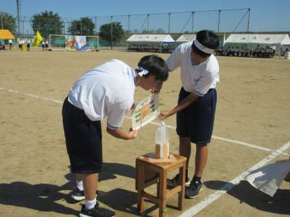 9月29日(木)第35回体育大会 2年生学年種目「満水レース」