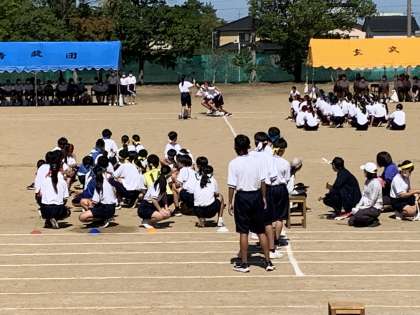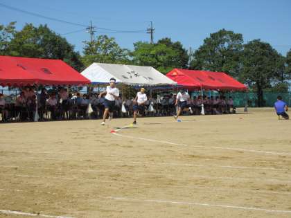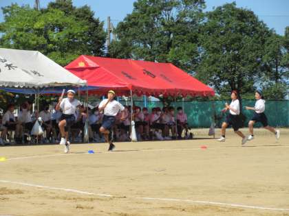 各団から選抜された生徒が走る「団対抗リレー」の活動写真です。