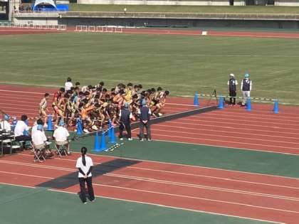 友好レースが行われました。男女2名ずつの4名で襷を繋ぎます。