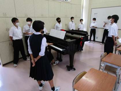 10月4日(火) 1年生 クラス合唱練習2日目 公開日 2022/10/04 更新日 2022/10/04 1学年 放課後、昨日に引き続きクラスでの合唱練習を行いました。手探りな状態ですが、リーダーは協力しながら練習を進めています。毎日少しずつでも進歩できるといいですね。