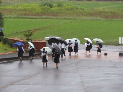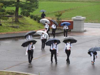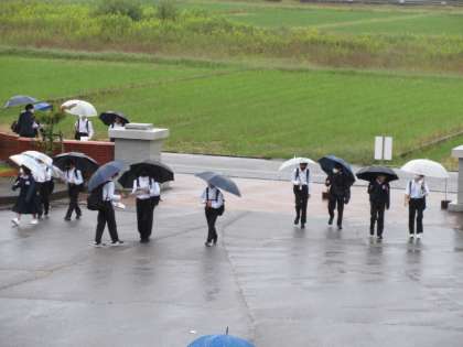 傘をさしての登校となりました。