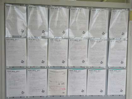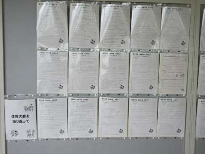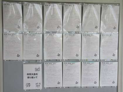 2年生の教室前掲示板には、「体育大会を終えて」の感想文が掲示されています。