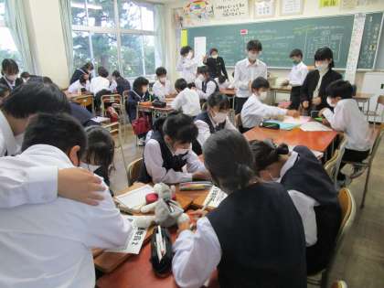 本日6限目学活では、後期の学級組織の最終決定をしたり、掲示物を作成したりしました。それらが終わったクラスは、合唱コンクール関連の作業をしていました。