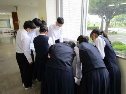 【写真下1−2】合唱コンクールリーダー達で並び順を話合っている様子